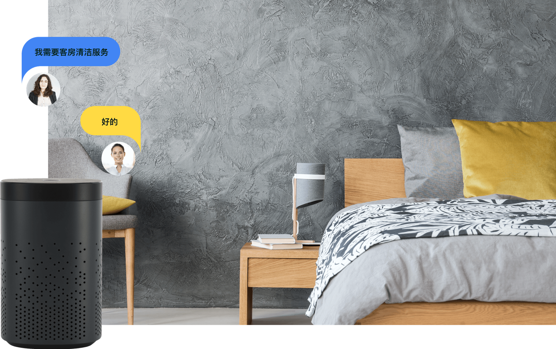 智能语音设备统一管理,支持语音客需配置、自定义问答、自定义欢迎语。语音客需支持补充物品、客房清洁、维修服务、退房服务、续住服务、洗护服务等六大服务类型。同时,支持第三方智能语音设备PaaS接入。